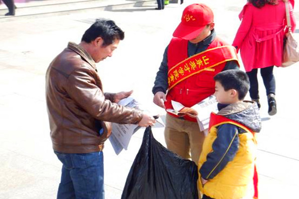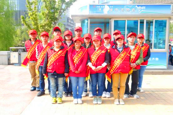 4月21日,山东英才学院志愿者协会组织人员在泉城广场进行志愿服务活动,此次活动由南北校区联合举办。