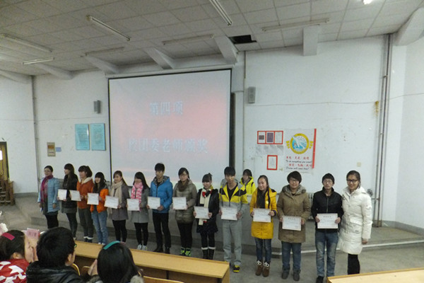 2013年12月19日中午12点,青年志愿者协会在阶梯教室三教室成功举办了2013年“一路有你”十三周年庆典表彰大会。青年志愿者协会指导老师寻芬,校团委宣传部部长兼社团指导老师毕璇,校团委组织部部长王建洲老师,团委大学生艺术团指导老师周子馨出席了本次大会。