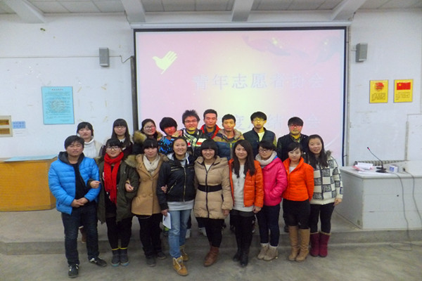 2013年12月30日下午4:30,青年志愿者协会在E楼阶梯一教室成功举办了2013年度总结大会。团委书记龙新良,青年志愿者协会指导老师寻芬出席了本次大会。