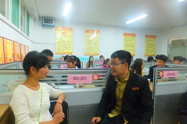中午12:00,十余名英才志愿者接待了驻济高校的八名志愿者,他们首先参观了英才志愿者值班办公室,也做了简单的交流。随后,进入会议室就做,“志愿者交流会”正式开始。
