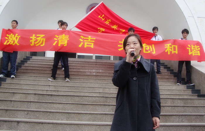 在活动开展之前,山东英才学院团委副书记王东生老师讲解了有关本次活动的大体项目和工作分配,并激励同学们形成良好的卫生文明意识,共同维护校园卫生。