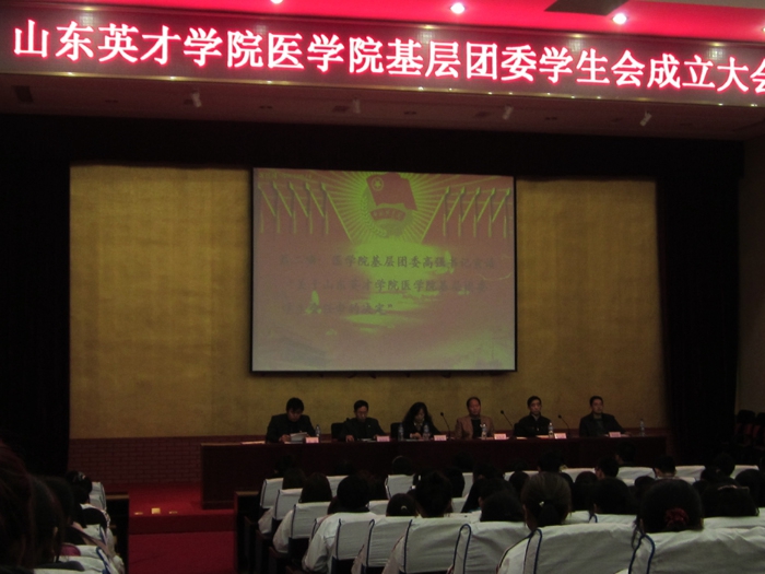 2011年11月9日下午4:30,医学院基层团委学生会成立大会暨团学干部聘任仪式在学术报告厅隆重召开。山东英才学院团委王东生副书记、医学院吴发举副院长、郭传祯副院长、王元军副院长、谭道海干事、全体辅导员老师及300余名学生干部、学生代表参加了本次大会,会议由医学院基层团委书记高强主持。