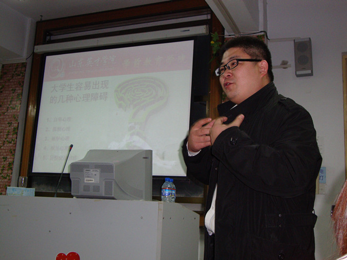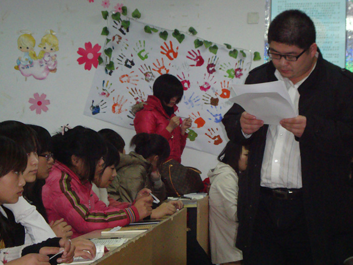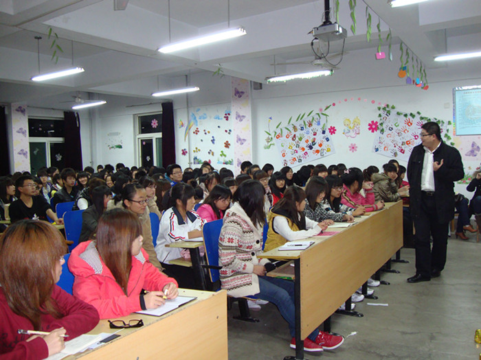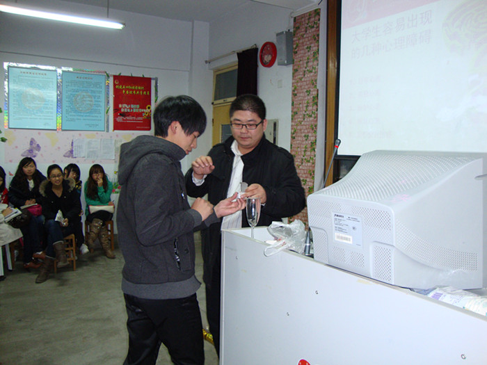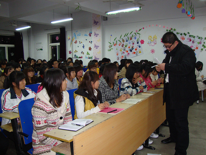 学前教育学院 2011年11月9日晚18时40分 在A楼3002教室举行了2011年学前教育学院心理咨询培训活动。本次培训的讲师是学前教育学院行政秘书李根老师。参加本次培训的有外联部部长张维,2011级各班班长、团支书、组织委员、宣传委员及心理委员。