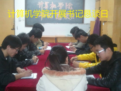 2011年11月11日 ,计算机学院基层团委冯雪梅书记在A楼5010主持召开“基层团委书记恳谈日――计算机学院团员青年的思想困惑”会议。此次座谈会有基层团委、学生会各部长以及2010级学生代表参加。