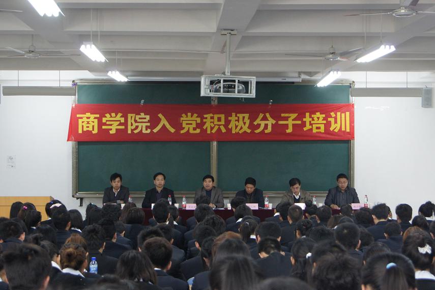 11月14日中午,商学院第七期入党积极分子培训班开班仪式在北校区教学楼100教室隆重举行。学院党办梁振爱主任,商学院党支部侯礼鹏书记,商学院曲永存副院长、姜磊副院长,基层团委刘金尧书记以及祝介伟老师应邀出席了本次会议,会议由刘金尧书记主持。全体辅导员老师及440名入党积极分子参加了会议,会议在庄严的国歌声中拉开了帷幕。