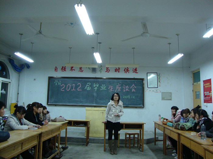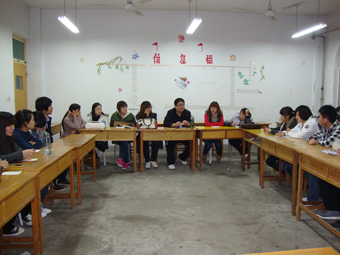 学前教育学院 2011年11月15日19时 在教学楼A楼5006举行了学前教育学院2012届毕业生座谈会。参加本次座谈会的有学前教育学院行政秘书 李根 老师、2009级辅导员 吴晶晶 老师以及2009级各班班委。