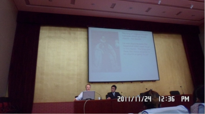 首先,Martin为同学们介绍了感恩节的起源、传统习俗、现代意义,不仅加深了同学们对异域文化的了解,而且还让大家深刻地理解了节日的意义,懂得了感谢与感恩。随后,外教Martin与同学们一对一的交流更是将此次讲座推向了高潮,Martin在回答同学们的提问时更是勉励大家好好学习,感恩父母、感恩同学,感谢身边的每一个人;讲座接近尾声时,Martin将感恩的主题升华,与大家一起畅谈了感恩对大学生的意义,并呼吁同学们感恩学校、怀着一颗感恩的心去面对生活;最后,同学们共唱“感恩的心”结束了此次讲座。