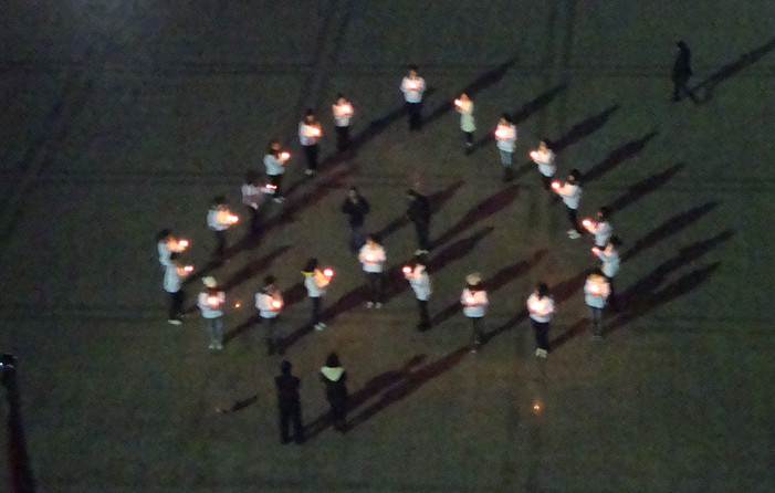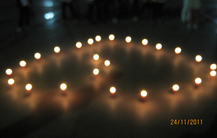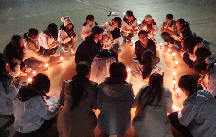 首先,基层团委学习科技部的全体成员在部长沙永强的组织下围成了一个心形,紧接着伴着《感恩的心》的音乐声,同学们都点燃了充满希望的蜡烛并随着音乐做起手语。最后,在大家高呼“老师,感恩节快乐”,“祝爸爸妈妈,感恩节快乐”中结束了本次活动。
