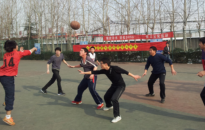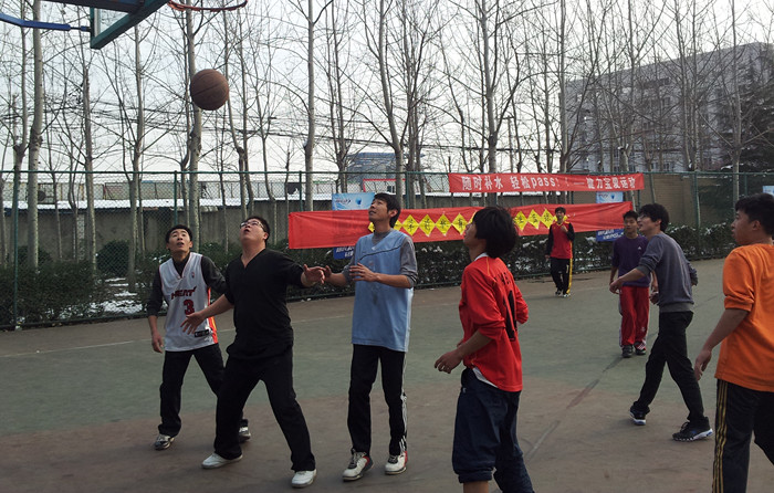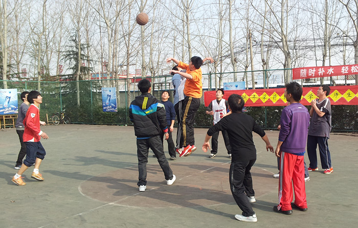 激烈的篮球赛在一声哨响下开始,师生们个个充满激情。赛场上,老师们的配合相当默契,学生们的动作十分敏捷。虽然寒冬已来,但是他们的热情早已将寒冷驱除,矫健的身影活跃在整个篮球场上,显示出了他们年轻的生命力。