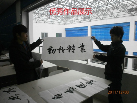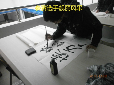 2011年12月3日 上午9点到11点,计算机学院基层团委学生会宣传部在北校区图书馆5楼自习室举办了主题为“发扬艺术之光,共创美好明天”的计算机学院首届书法大赛,参加本次活动的有计算机学院学生会主席陈晓龙、基层团委常务副书记司晓林、副主席于洁泳、李梦媛、宣传部部长杨小明。