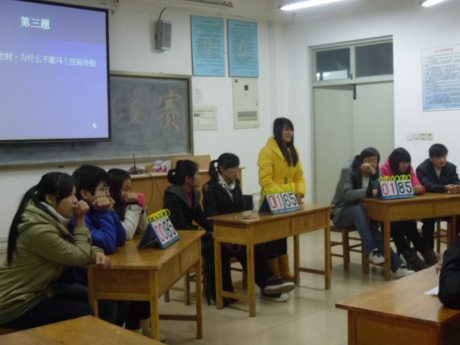 为进一步加强学校消防安全教育,不断提高广大学生的消防安全意识和防火自救能力,减少校园火灾事故的发生,营造良好的校园安全环境。在消防日来临之际,于 2011年12月3日 ,在B楼1021举行了消防安全知识竞赛,参加本次活动的有计算机学院辅导员老师、10级电子班、网络班、高职信管班及10级个班代表。