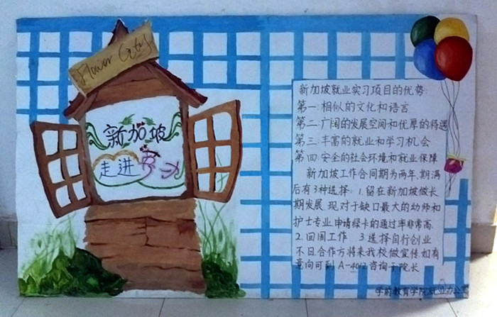 出国就业可以避开国内严重的就业压力,可以快速累积工作经验、提升英文能力、短期内攫取事业发展的“第一桶金”,为个人后续就业和发展赢得先机、赚取优势。近日学前教育学院开展了“新加坡走进英才”为主题的交流会,并于教学楼A楼四楼大厅进行了活动展板公示。