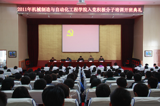 机械制造与自动化工程学院党支部举行本期入党积极分子培训班,旨在加强学员对党的基本知识、基本路线和基本理论的学习,使大家对党史党情、党的性质、任务、党的组织原则和纪律有一次较为全面的了解和认识,树立正确的入党动机,严把入党关,端正入党动机,了解入党的程序。并通过广泛开展内容丰富的学习教育活动和社会实践活动,引导他们树立正确的世界观、人生观和价值观,坚定正确的理想信念。在政治思想上积极向党组织靠拢,在行动上以党员标准严格要求自己,在学习工作生活中发挥党员先锋模范作用,争取早日加入中国共产党,为学院、社会的发展做出新的贡献。