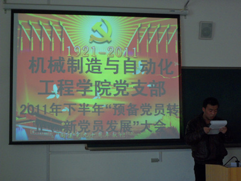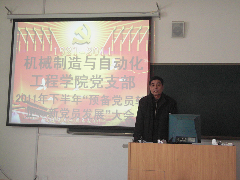 2011年12月13日 ,机械学院党支部全体党员和预备期满、新发展入党的党员参加了“预备党员转正、新党员发展”大会。会议由机械学院党支部书记孔祥泉同志主持。