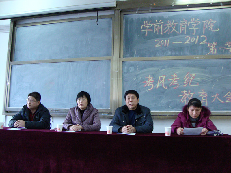 为严肃考风考纪,杜绝考试作弊现象,形成积极良好的学习氛围,学前教育学院于2011年12月15日12时在综教北楼1010召开了2011―2012第一学期考风考纪教育大会。