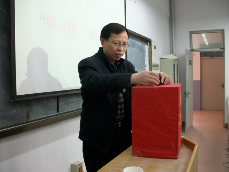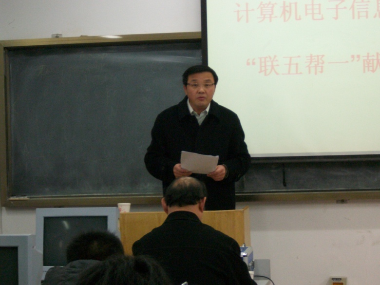 2011年12月14日 ,计算机学院在B楼PLC室举行“联五帮一献爱心”活动,出席本次大会的有学院梁院长、计算机学院行政院长杨院长、机关党支部书记李书记、计算机学院全体党员及计算机学院帮扶的学生。