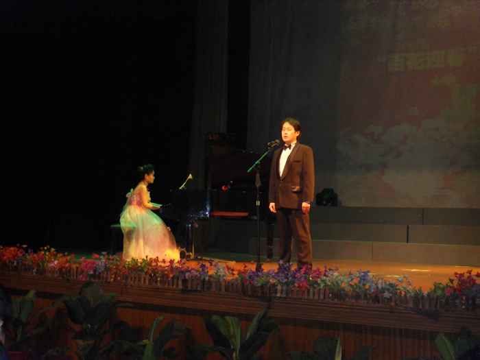 音乐会在一曲《百花迎春》中拉开了帷幕,演唱者动人的歌喉、激情的表演迎来台下观众的阵阵掌声。每首音乐都有它的独特之处,使观众们深深陶醉在其中。吴衍顺老师激情献唱了《草原之夜》和《梨花颂》把现场的气氛推向高潮。此外,钢琴独奏《春舞》让人耳目一新,拍手叫好。音乐会在大合唱《今夜无眠》中落下了帷幕。