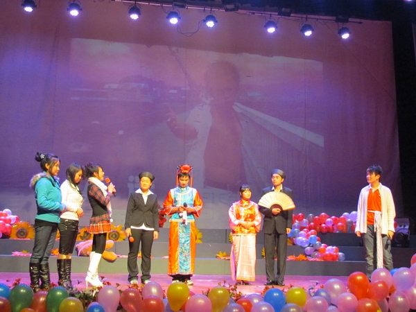 晚会以热情洋溢的青春歌舞开场,动感欢快的旋律,点燃了台下观众的激情,本次晚会可谓精彩纷呈、融合了歌曲、舞蹈、小品等众多形式,呈现了一场无与伦比的视听盛宴。在舞蹈表演中,既有激情四射的现代舞《circus》,也有动力十足的街舞《动力元素》,更有充满民族特色的舞蹈《七月火把》。小品《我要上大活》引得现场阵阵欢笑,情景剧《还珠格格》以无厘头的诙谐话语引得同学们的阵阵掌声、彩声不断,全体辅导员老师的搞笑舞蹈串烧《风柔凉舞》引爆了晚会的最高气氛,台下师生共欢喜。最后在学生自编歌曲《我爱我的家》的优美旋律中慢慢落下帷幕。