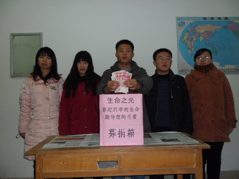 当年轻的生命正焕发着青春的活力,当灿烂的笑脸正准备迎接着美好的未来,命运却开了一个无情的玩笑。命运无情人有情,爱的暖流绵绵不断!扶危济难,弘扬善举,是我们这个社会的最动人的主旋律。全校师生和社会各界的关爱,为郭超同学筑起了坚实的后盾,让郭超同学有更大的勇气面对不公的命运。让我们用真情为生命加油,用爱心去传递生命!