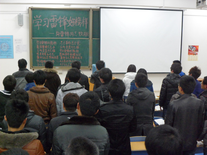 为了更好地向同学们宣传雷锋事迹,号召大家学习雷锋精神。机械学院于2012年3月5日晚上七点,全体2011级学生在各班级自习室唱响了“学习雷锋,好榜样”之歌,迈出了机械学院雷锋月活动的第一步。