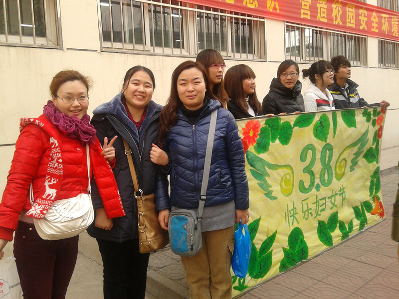 3月8日是第102个“国际劳动妇女节”,学前教育学院的学生们一早就集合在班车下车点,为学院女老师们庆祝节日。