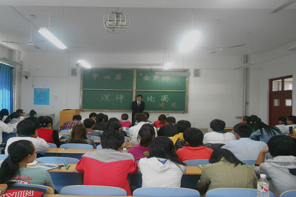 为进一步丰富校园人文底蕴,创造校园浓郁的文化氛围。2012年9月28日,第四届“金梦杯”文明伴我行主题演讲比赛决赛在教学楼B108举行。此次演讲比赛从9月18日启动以来,得到了各领导、辅导员老师和同学们的支持,经过严格的初赛,共有十七名选手进入了决赛。