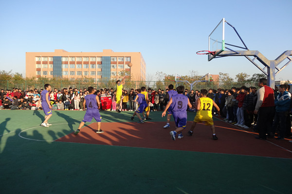 11月14日,由山东英才学院体育教研室主办的 “迎新杯“篮球赛在学院北校区篮球场举行,本场比赛双方分别是经济管理学院2012级男子代表队和商学院2012级男子代表队。经济管理学院基层团委书记王鹏飞,团委副书记、学生会主席吕孝围,学生会副主席管培军及学生会全体干部到场助阵。