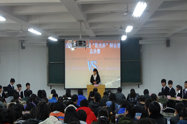 11月15日,经济管理学院于教学楼B举行第八届“阳光杯”辩论赛总决赛。出席本次比赛的有经济管理学院行政院长王广柱,经济管理学院辅导员,经济管理学院基层团委副书记、学生会主席吕孝围和学生会各部门部长。