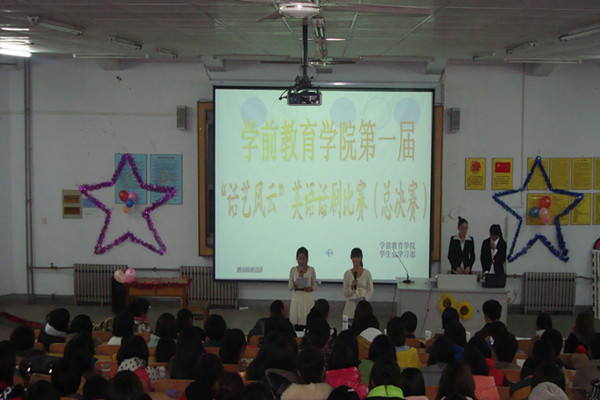 为提高学生学习英语的兴趣,营造良好的英语学习氛围,学前教育学院于11月25日在阶梯一教室举行了学前教育学院首届“话艺风云”英语话剧大赛,并取得圆满成功。