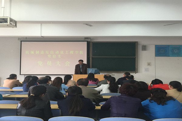 为全面学习贯彻全国“两会”精神,引导广大党员深刻领会、准确把握“两会”精神实质,促进学校各项工作落实,同时根据《中共山东英才学院第三次代表大会代表选举工作的通知》,选举产生机械制造及自动化工程学院党总支出席中国共产党山东英才学院第三次代表大会代表。2016年4月7日中午12:10,机械学院党总支在实训北楼4010教室举行了全体党员大会,出席参加大会的有山东英才学院副院长孙玉香同志,机械学院党总支书记刘延利同志,以及党总支全体党员。会议由机械学院党总支副书记孔祥泉同志主持。