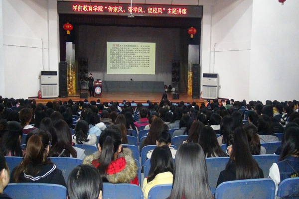 为了鼓励和动员学前学生铭记“自强不息、与时俱进”校训,带动“立德、博学、重能、求真”优良学风养成,建设“扬善修美、求真务实”的优良校风。学前教育学院党总支书记王冠良以“做最好的自己”为题,围绕践行核心价值观,共塑良好家风,同促优良学风等方面对15级学生展开了一场主题讲座。学院郑雯副院长带领辅导员老师与1000名学生共同聆听了讲座。