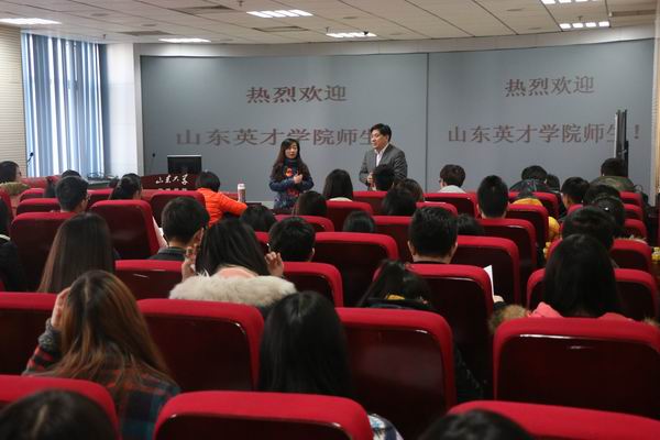 欢送2015,喜迎2016。年末岁首跨年之际,为了提高社会实践能力、开阔思路、加强校际合作,外国语与国际交流学院财务管理、工商管理专业本科生(包含经管学院部分学生)在外国语与国际交流学院基层团委组织次下,在教学副院长徐贵丽副教授老师的带领下,与山东大学管理学院联合举办了“英才学子山大行”活动。