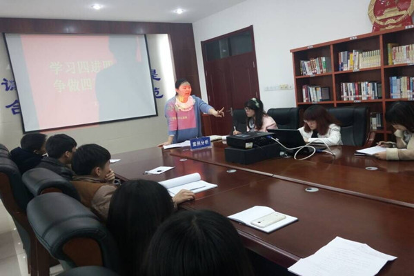 文法学院基层团委2015年12月9日,文法学院在实训楼208室法律诊所召开“学习四信四进,争做四可青年”书记恳谈会。此次恳谈会主要是为引导帮和助团学干部进一步牢固树立对党的科学理论的信仰,鼓励他们争做“可爱、可信、可贵、可为”的“四可”青年。