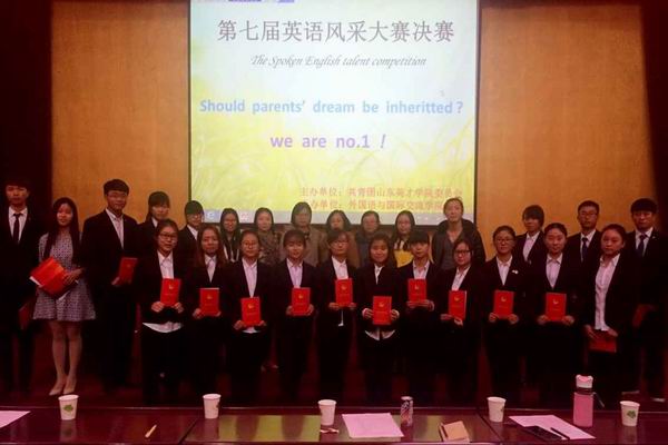 比赛中,参赛选手们按照原定抽签顺序在规定的时间内通过自我介绍、主题演讲、才艺展示进行三个环节的角逐。17名选手围绕“Whether parents' dream to be inherited by the children”这一主题,以流利而精准的英语阐释了自己的观点,他们的口语表达或自然清新,或慷慨激昂,或发人深思,台上选手们以其从容的姿态、标准的发音,流利的表述发挥的淋漓尽致;优美的英文朗诵、歌曲,体现了选手们的多才多艺,不时博得台下阵阵掌声。经过1个多小时的激烈角逐,经过专业评委的公平公正的打分,最终外国语与国际交流学院刘凤英同学凭借冷静睿智的心理素质、扎实过硬的专业知识,出色的个性展示分别获得了本次英语风采大赛的一等奖,外国语与国际交流学院王慧芳同学,建筑工程学院袁琦儿同学获二等奖。