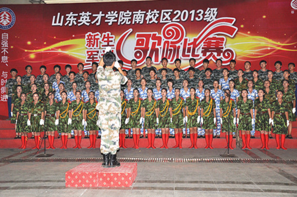 “女兵走在大街上,巾帼风采天地撒。战士的豪情女儿心,心系千万家……”动听嘹亮的歌声响彻整个英才学院。8月22日晚7点,山东英才学院南校区大一新生军训歌咏比赛在我院A楼广场拉开帷幕。山东英才学院副院长李崇银教授、学生处王冠良处长、各二级学院行政院长等领导与大一新生共同观看了比赛.
