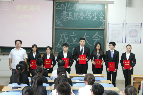 长江后浪推前浪,一代新人换旧人。2015年9月18日文法学院举行一年一度的基层团委学生会换届大会,新的学生会在院长、书记的殷切期望中,在学长学姐们的委托下正式认命。
