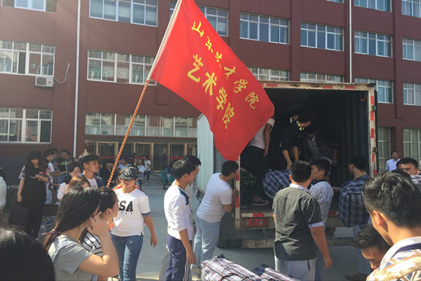 早上7点50分,艺术学院学生会准时在7号公寓前集合,等待着国际交流的的同学们。9点多,随着礼炮声,校车驶进北校区,意味着搬迁工作正式开始。艺术学院的行政副院长孙玉山和基层团委书记王志涛带领着学生会的成员一起进行搬迁工作,艺术学院的学生骨干们充分的体现出不怕苦,不怕累的精神,也代表着艺术学院学生会硬朗的作风,帮着国际交流的同学们卸行李,搬行李,大物件一起扛抬着。考虑到女生的力气问题,特允许在搬迁期间男生可以进入女生宿舍,这不仅提高了宿舍搬迁效率,也进一步加深了同学们之间的团结合作精神。