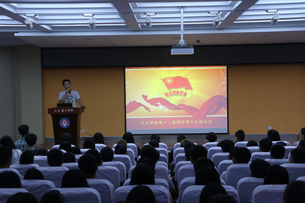 2015年9月20日晚7:30分,艺术学院第十二届团学骨干会议在学术报告厅举行。会议由艺术学院基层团委书记王志涛主持,学生会纪检部组织入场,基层团委和学生会全体新老部员参加。