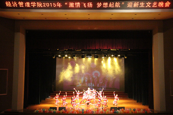 2015年9月24晚,在经济管理学院大学生活动中心以“激情飞扬,梦想起航”为主题的迎新生大型文艺晚会在北校区大学生活动中心成功举办。出席本次晚会的有山东英才学院副院长及各职能部门,各科室领导,各二级学院行政院长基层团委书记,经济管理学院领导老师,2015级全体新生参加。