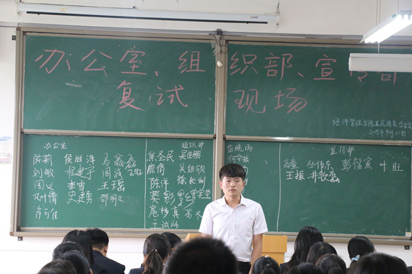 为了确保经济管理学院基层团委、学生会加入一股道德素质高、礼仪文明好,态度端正、执行力强的新鲜血液,更好的促进团学工作的开展,在经过了严格的初试后,经济管理学院基层团委、学生会于2015年9月10日在教学楼B楼406、408、404教室举行经济管理学院基层团委、学生会复试,经济管理学院基层团委副书记黄涛、学生会主席齐放、副主席李杨杨和全体学生会干部担任此次面试官。