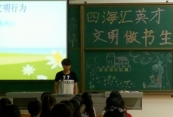 为了进一步加强校园文明建设,传承优良的校风和学风,帮助同学们树立较好的礼仪行为规范。学前教育15级各班于2015年9月10号晚7时在学前教育新楼开展了“四海汇英才,文明做书生”的主题班会。