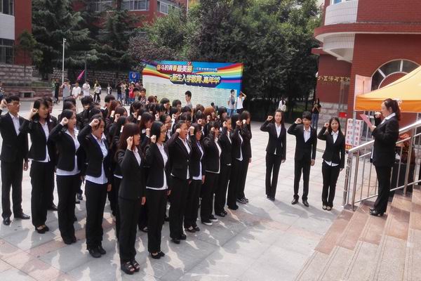 活动由学生会主席程云青主持,活动在全体高唱国歌后开始,先有程云青带领基层团委、学生会所有团学骨干回顾了那段刻骨的历史,告诉团员们只有铭记历史才能开创未来。随着程云青一番慷慨演讲全体人员举起右手进行宣誓,宣誓过程中声音荡漾整个校园,放下右手宣誓结束,最后全体人员拍照留念,宣誓活动圆满结束。