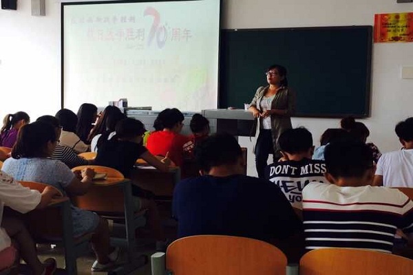 9月1日中午,医学院基层团委张巧梅书记组织14级各班班长和团支书开展抗日战争纪念日主题恳谈会,恳谈中有学生提出疑问,抗战纪念日为什么在这一天?张书记结合主题课件向同学们做了详细解释。随后回顾观看了血多历史画面、品味抗日战歌、激励我们要以史为鉴,发愤图强。恳谈会尾声,张书记希望同学们牢记历史,铭记中国人民反抗日本帝国主义侵略的艰苦卓绝的斗争,缅怀在中国人民抗日战争中英勇献身的英烈,不断提高自身的爱国情操。9月1日至9月3日,医学院各班级团支部组织开展了班级的主题团日活动。告诫同学们现在的生活是祖辈用生命换来和平,用艰苦换来安康,要继续发扬彪炳史册的抗战精神,来捍卫这块美丽缤纷的土地。9月3号上午,在观看阅兵典礼时还举行了微博上线活动,医学院基层团委学生会和各班都积极响应,对纪念抗日战争胜利70周年发表自己的感慨和对祖国未来的希冀。