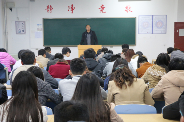 会议伊始,王院长就向大家强调国考期间的考风考纪,严格遵守考试文明。首先,抓好学生的思想认识,是搞好考风考纪建设的关键。学生是教学的主体,加强考风考纪建设,抓好学生的思想认识,既是关键点,又是切入点。我们利用班级团体之间与辅导员交流开展学生的思想教育、考风考纪教育,号召同学们诚信考试,以诚实守信为荣,以考试违纪为耻,每班每位学生都积极加入其中,通过集中的学习,使学生深刻认识到触犯校规校纪的严重性。同时加大管理力度,从思想和管理两方面规范了学生的行为。有了良好的学习动机和管理体制,学生的学习热情提高,学习的自觉性加强,学风有所好转,随之考纪考风也会好转。其次,开考前院长和辅导员到所负责的学生中进行动员和教育。为创造优良学风,营造良好的考试氛围,学院加大宣传教育力度,学院要求各学院管理老师和辅导员参加宣讲考试纪律和要求,“加强考风考纪教育”为主题的班会,坚持教育为主,把让考生真正树立诚信做人、文明律己、公平竞争的思想观念作为端正考风的根本。增强了学生的自我约束意识;向全院学生发出”杜绝作弊,诚信做人”的倡议;对于违纪舞弊事件,按照学校的有关规定,发现一起,查处一起,决不姑息迁就。最后,针对国考考试考风考纪问题。王院长强调考试期间不得带手机等通讯工具;考试期间杜绝交头接耳;考试期间不得传达纸条等;国考坚决杜绝出现雷同试卷,坚决杜绝任何违纪通过考试的侥幸心理,违规者开除学籍。针对期末考试考风考级问题。一旦发现坚决开除学籍,任何有关系有背景的学生无一例外。积极营造“考试文明”的氛围。