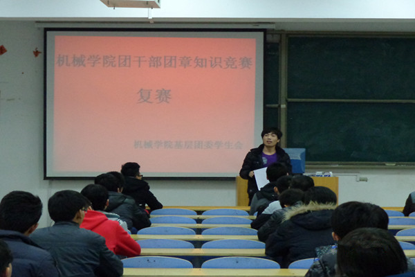 根据团省委下发的《关于组织全省各级团干部和广大团员青年认真学习团章的通知》,为了使广大共青团员对中国共产主义青年团有更深刻的认识,机械学院基层团委学生会于2013年11月27日在实训北楼4004教室举行了《中国共产主义青年团章程》知识竞赛。本次活动初赛有各部门内部选拔,复赛以笔试为主。再以卷面分择优进入决赛。
