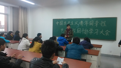 2013年11月27日下午4:30艺术学院在艺术楼301室举行了中国共产主义青年团章程学习交流会。会议由闫金辉老师主持,参与会议的人员是艺术学院团学骨干。