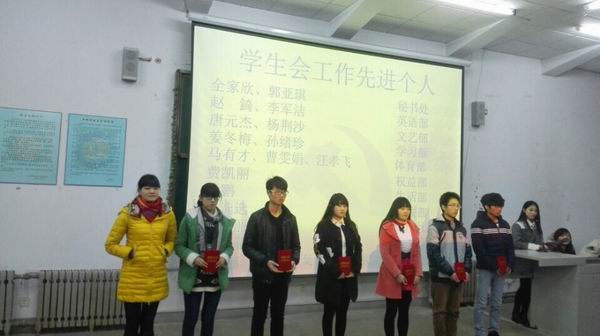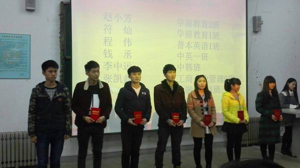 会上,外国语与国际交流学院基层团委副书记程湘静、学生会主席陈杰分别为本学年表现突出的基层团委、学生会成员、团支部书记、班长颁发了工作先进个人荣誉证书,同时宣读了新一届基层团委副书记、学生会主席团名单。紧接着,外国语与国际交流学院新任基层团委副书记贺化龙及新任学生会主席程云青先后发言。他们的讲话中包含着激情,盛载着责任,取其精华,推陈出新是他们坚守的理念。他们满怀欣喜、面带微笑,眉宇间透露着骨气,进取。最后,祝书记作了年终工作总结。对上任为基层团委学生会付出辛勤劳动的部员们表示衷心感谢,对新任领导班子的认可以及对他们未来的期望。