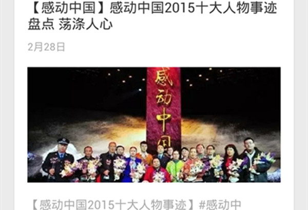 新鲜出炉的感动中国2015年度十大人物颁奖晚会,又一次深深地打动了每个中国人,正值即将开学之际,让同学们重温他们的感人事迹,让这满满的正能量伴随莘莘学子们开启2015年新的征程!