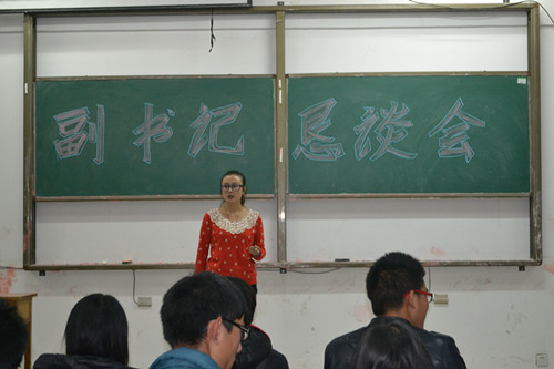 2013年11月28日下午4时30分,商学院基层团委于综教北楼4014召开了“副书记恳谈会”。此次恳谈会是以“倡导节约,反对浪费”为主题,参加此次恳谈会的有基层团委副书记东琪琪、基层团委全体部员。