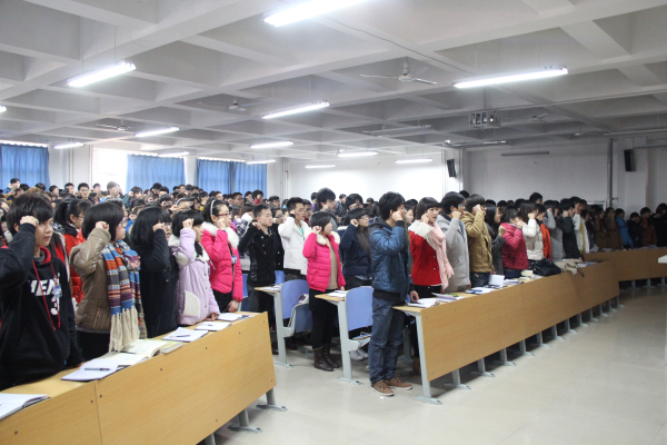 为进一步贯彻落实团中央十七大精神,进一步强化学习新团章、遵守团章、践行团章意识。2013年12月2日,经济管理学院基层团委、学生会响应团委号召,在教学楼B-200教室开展全体团学干部新团章学习活动。经济管理学院基层团委书记王鹏飞及经济管理学院十二届全体团学干部参与此次学习活动。本次活动的主讲人为办公室主任路宗伟。